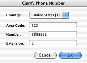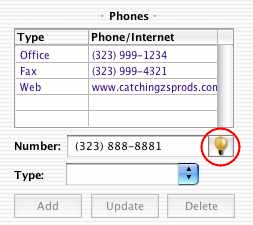 You can also clarify a phone or fax number by clicking the lightbulb button.