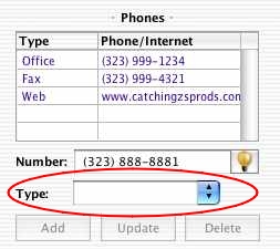 Select the Type of number you're entering from the pop-up list. This will allow you to link to fax cover sheets and emails later on.