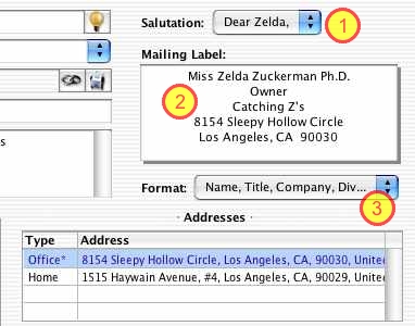 The Mailing Label field (2) will display how the mailing label will format. To adjust this Format, use the pop-up list (3).