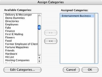 Click on the Categories button to assign categories to this record. Categories from a linked company will already appear in the window.