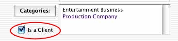 Check the “Is A Client” button to mark this entity as a client. This is necessary for appointments, bookings, calendars, submissions, and in the event you are syncing clients to IE on a handheld device. For more information, see “Adding A Client” in the IE Help files.