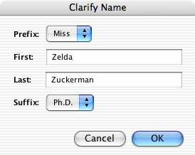 Use the "Clarify Name" window to make adjustments.